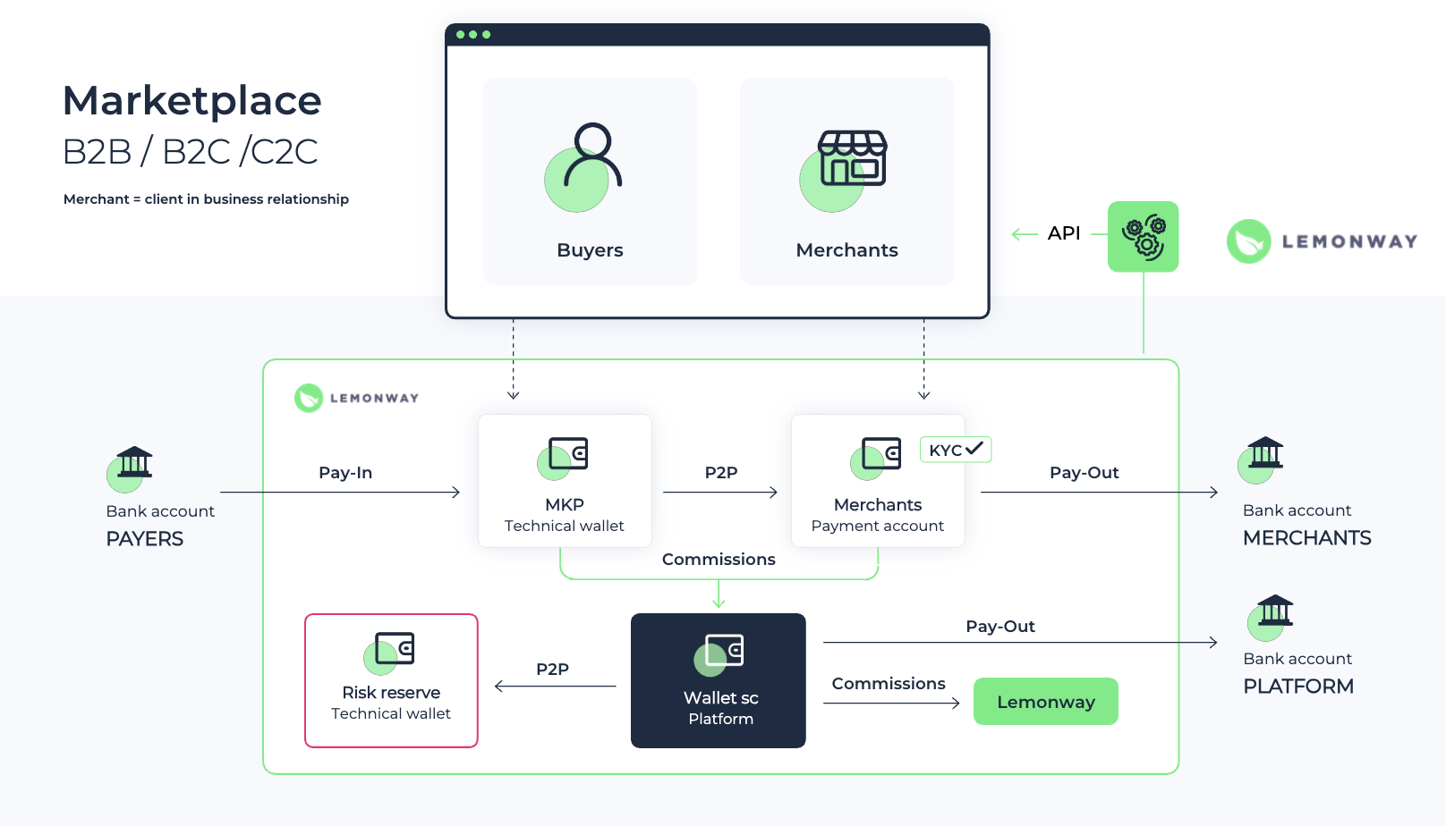 Since you’ve got your SC Wallet from your Lemonway onboarding and the merchant has their Standard Wallet after onboarding, the Technical Wallet handles the heavy lifting in the middle. Think of it as the staging area: the Pay-In is deposited in the technical account first.