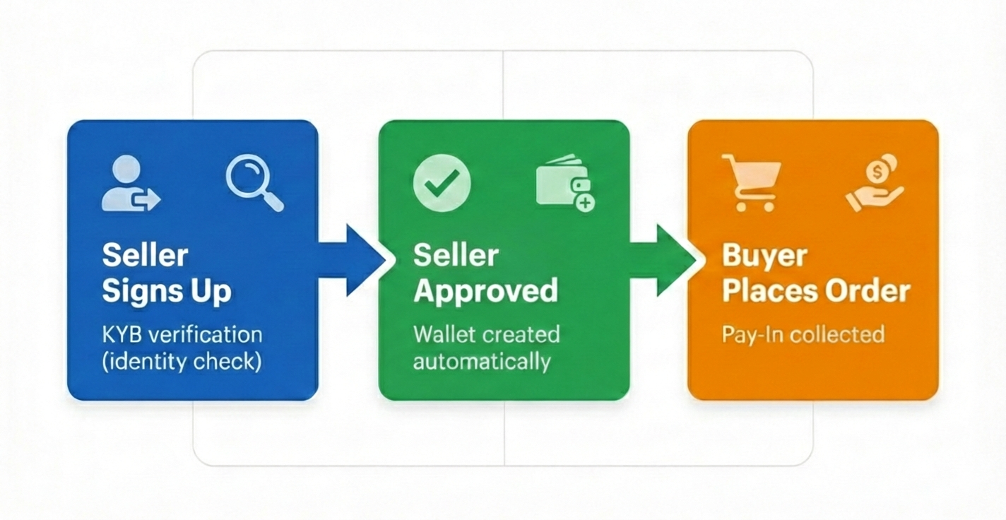RuleA seller wiil not receive any funds until their KYB has been accepted and a wallet has been created.