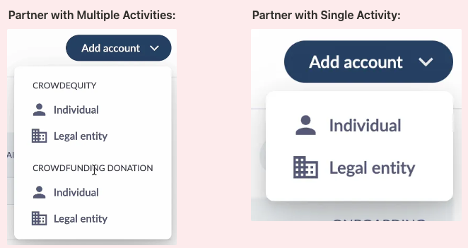 🆕 Dashboard Add individual or Legal Entitiy Account