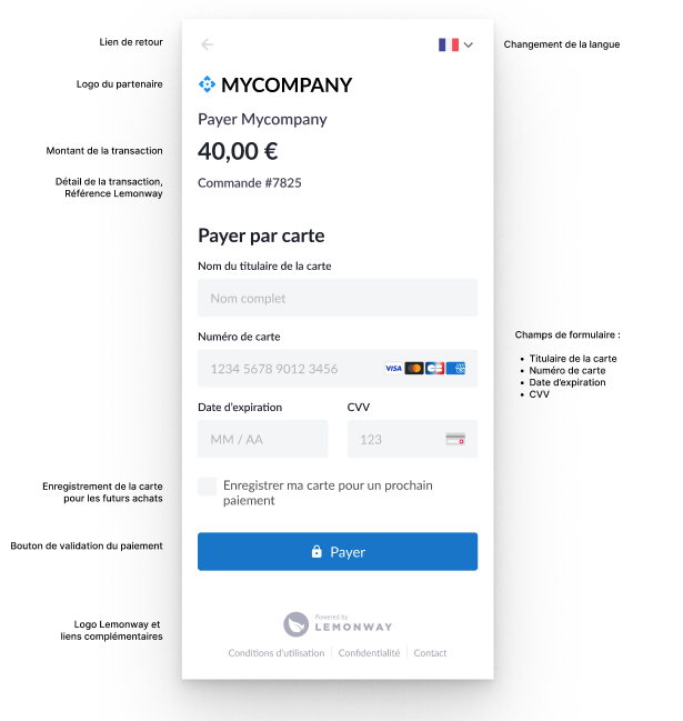 The Lemonway Payment Page is a Lemonway fully hosted card payment solution enabling partners to accept payments without handling sensitive card data.
