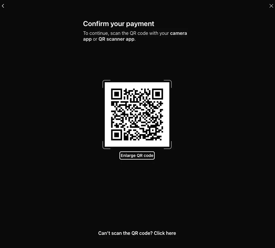The user can scan the QR code with their smartphones to connect to their bank, or continue using their desktop computer.