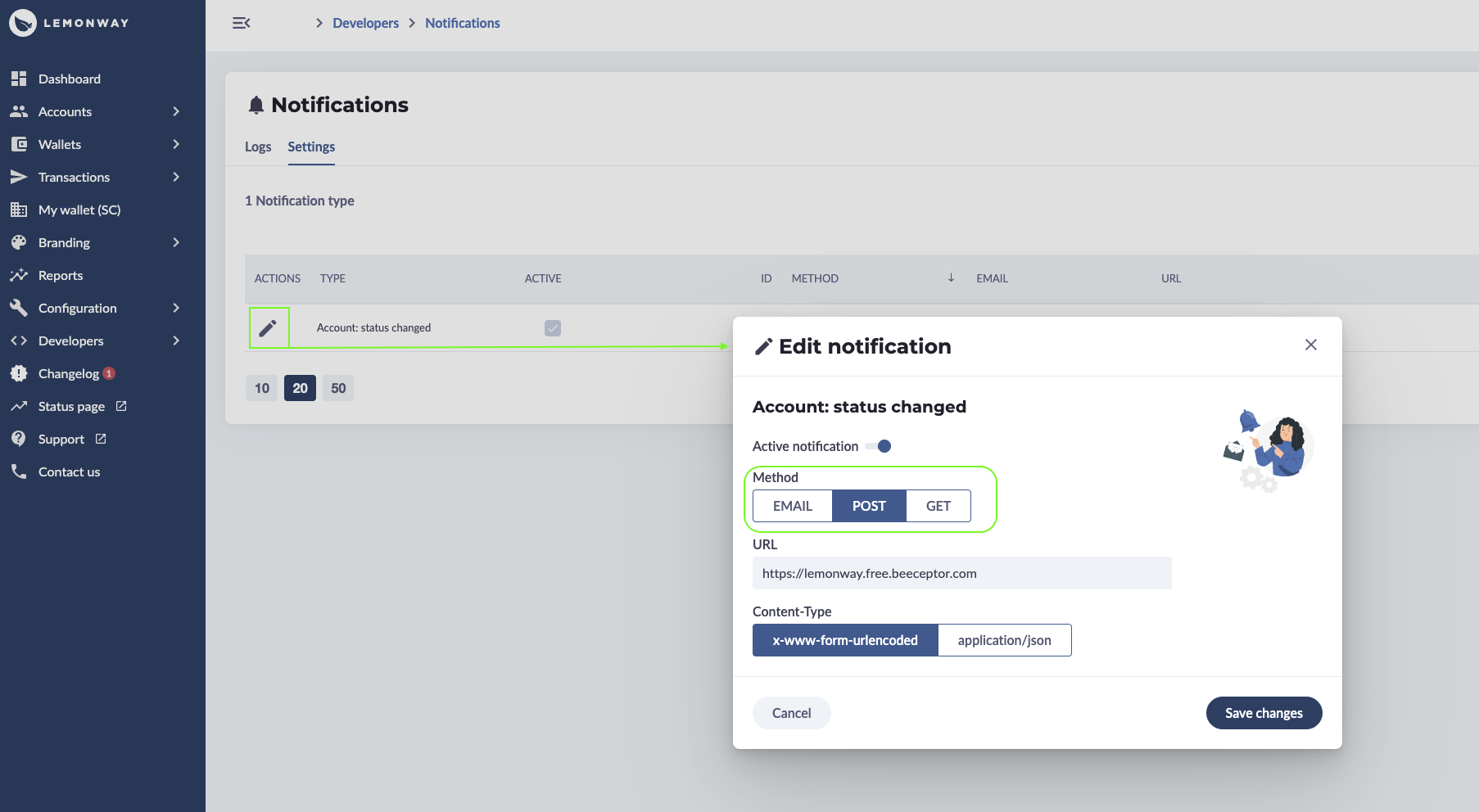 Onboarding Webhooks: Using Lemonway Dashboard