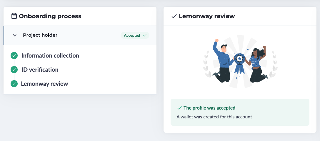 Dashboard view - Profile accepted and wallet created