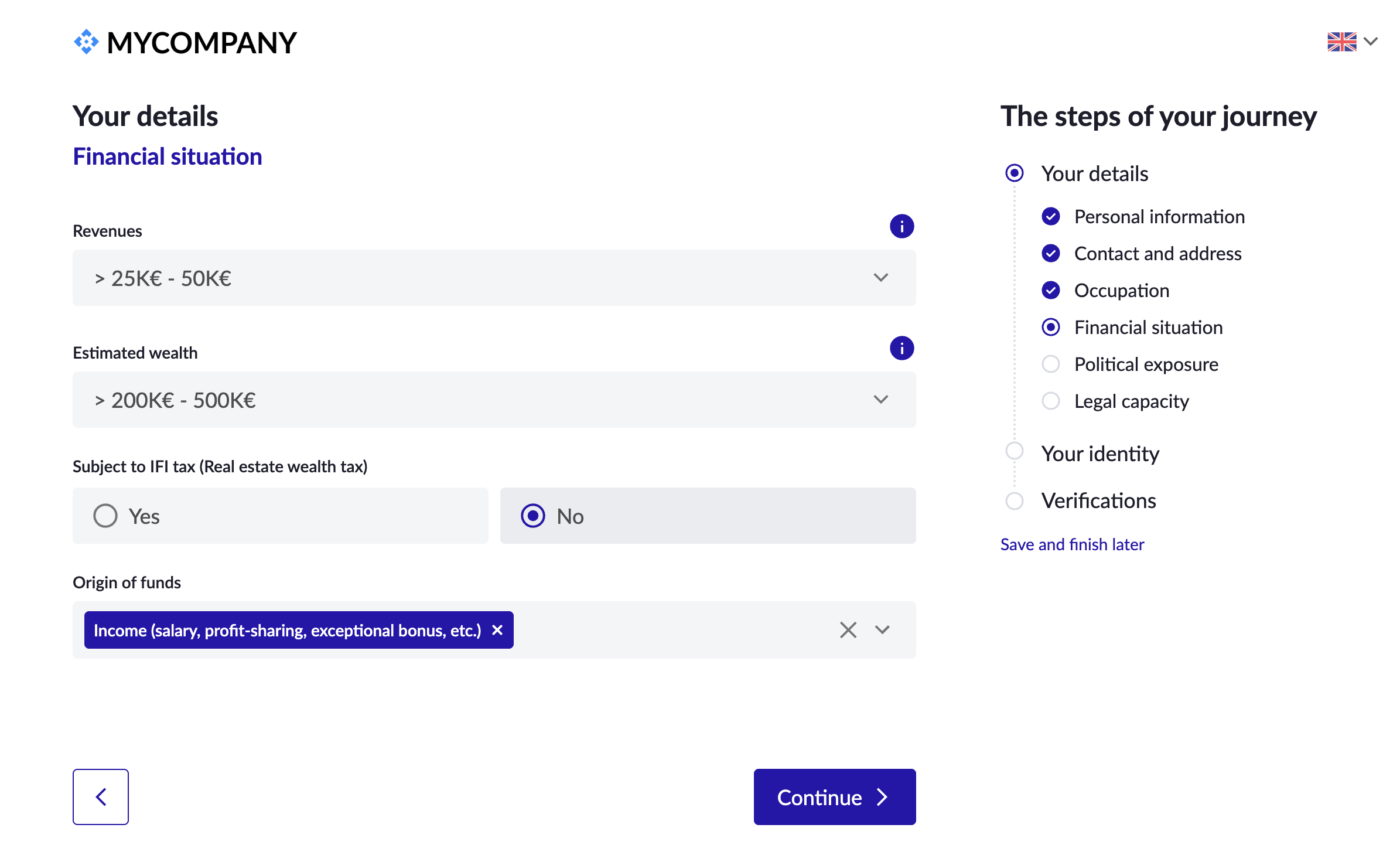 We accept KYC documents in French, English, Spanish, Italian and German. For other countries, we require an official translation in one of the above listed languages.